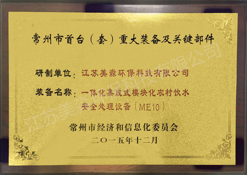 常州市首臺(套)重大設備及關鍵部件